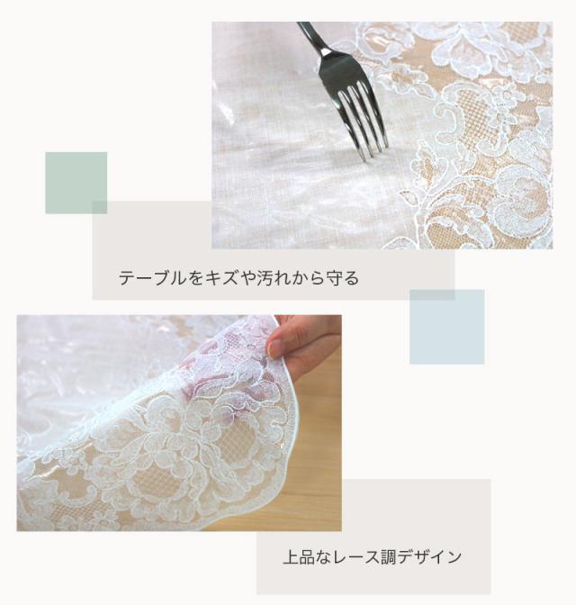 キーワード: テーブルクロス 防水 ビニール レース ビニールクロス テーブルカバー 撥水 傷防止 6人掛け 食卓カバー 華やか 汚れ防止 レース調 おしゃれ かわいい 上品 エレガント ナチュラル ホワイト 白 アイボリー ベージュ 明和グラビア 送料無料
