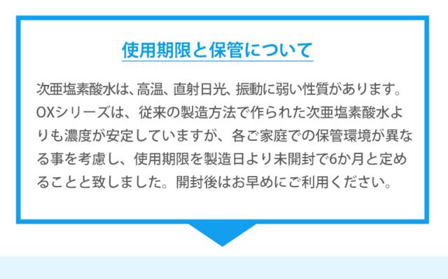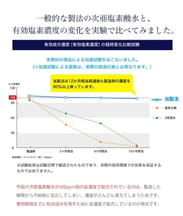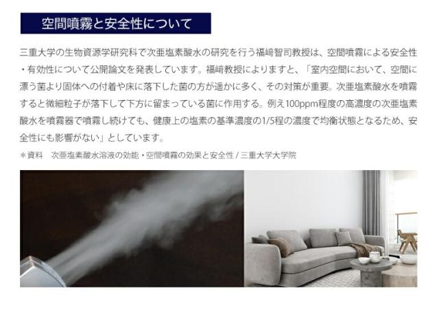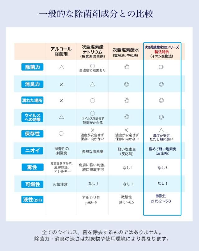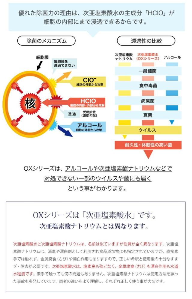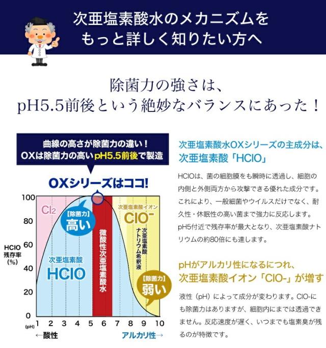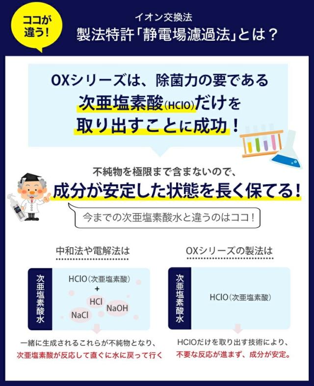 ・主成分:次亜塩素酸(原料:次亜塩素酸イオン水溶液)、純水
