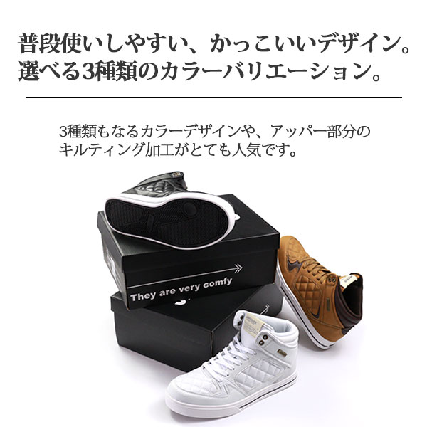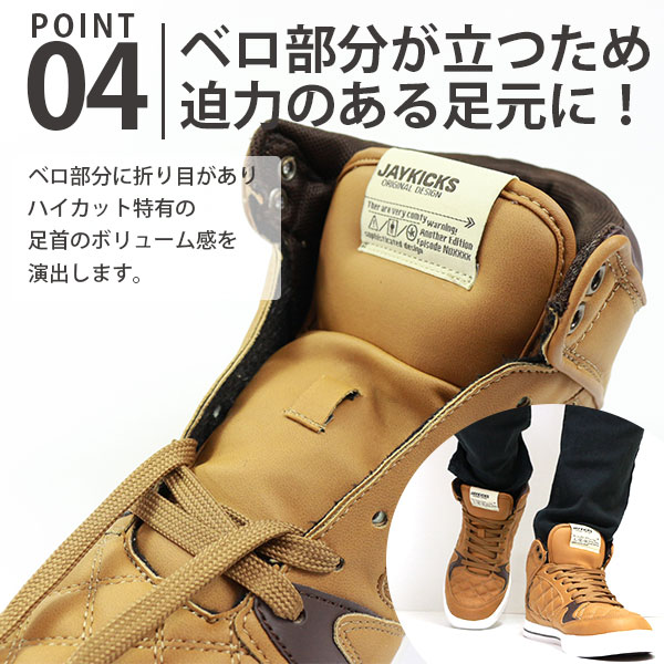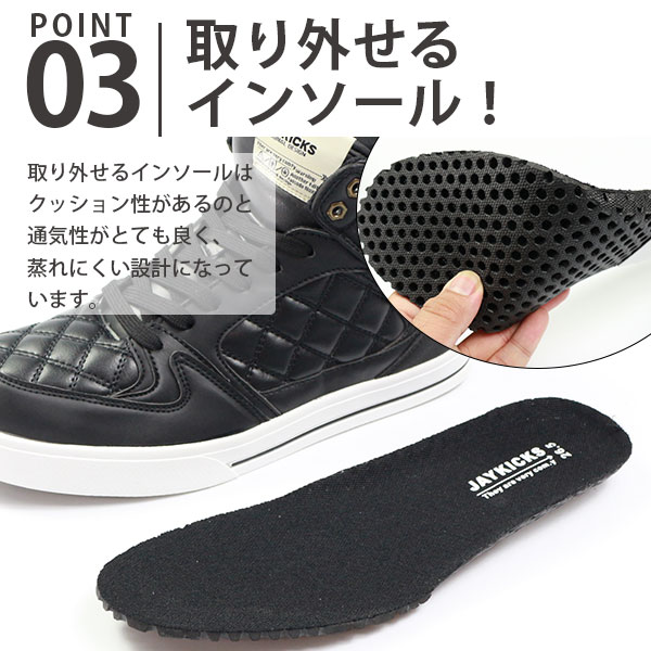 メンズ スニーカー ハイカット 靴 25.0-28.0cm 男性 ジェイキックス JAYKICKS JK4134 JK5503 高級感 コスパ 安い クッション性 キルティング加工 黒 白 通勤 通学 仕事 学校 靴下 コーデ トレンド 秋 冬 ボリューム