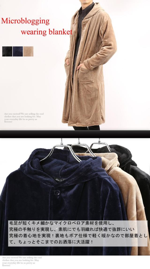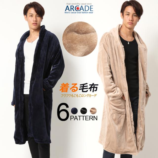 着る毛布 マイクロべロア ルームウェア ガウン フリース メンズ カーディガン あったか おしゃれ