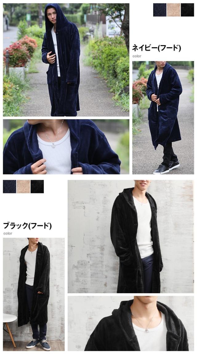 マイクロフリース ベロア の暖かい ガウンのようなロングカーデ ふわふわの肌触りのざっくり感は、まさに【着る毛布】メンズ カーディガン 秋冬新作 あったか おしゃれ