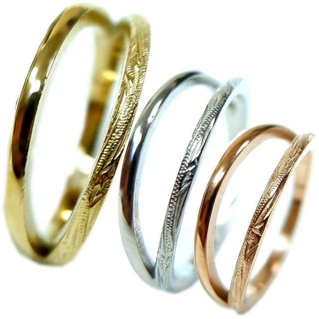 ハワイアンジュエリー リング 2連風 K14イエローゴールドコーティング ピンクゴールド サージカルステンレス スクロール ラッピング対応 アレルギー対応 ペアリング セットにも