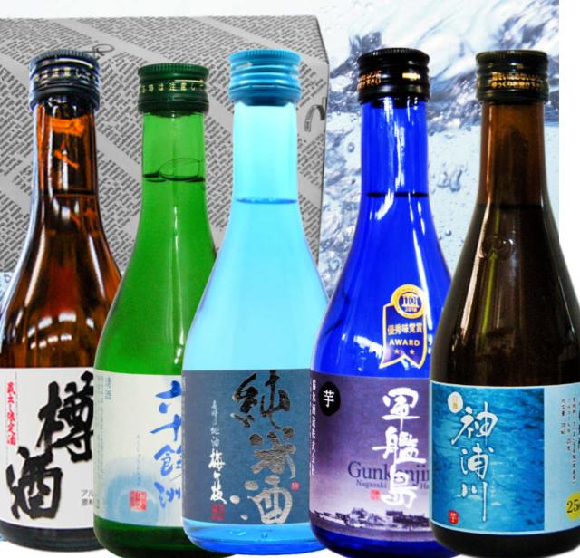 長崎特産 日本酒 焼酎ミニボトル飲み比べ 梅ヶ枝 杵の川 六十余州 軍艦島 神浦川白300ml/5本箱入