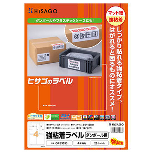 【メール便発送】ヒサゴ 強粘着ラベル(ダンボール用) A4 4面 角丸 20シート入 OPS3033