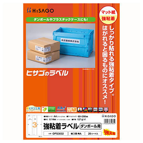 (まとめ買い)ヒサゴ 強粘着ラベル(ダンボール用) A4 縦3面 角丸 20シート入 OPS3032 〔3冊セット〕 【北海道・沖縄・離島配送不可】