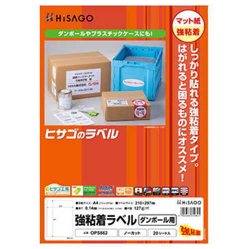 (まとめ買い)ヒサゴ 強粘着ラベル(ダンボール用) A4 ノーカット 20シート入 OPS862 〔3冊セット〕 【北海道・沖縄・離島配送不可】
