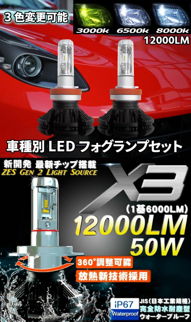車種別 LED フォグランプ【 ピクシストラック S5#0U H26.09〜 H8/H11/H16 】車検対応 イエロー/ホワイト/ブルー 3色着替可能 12000LM