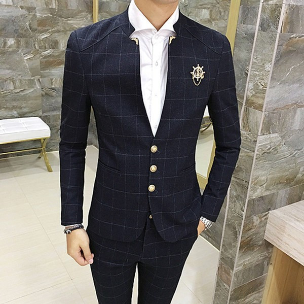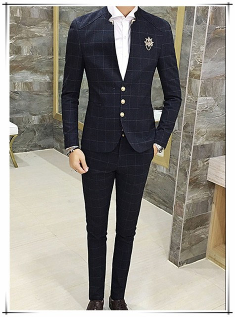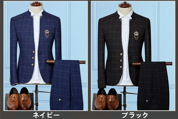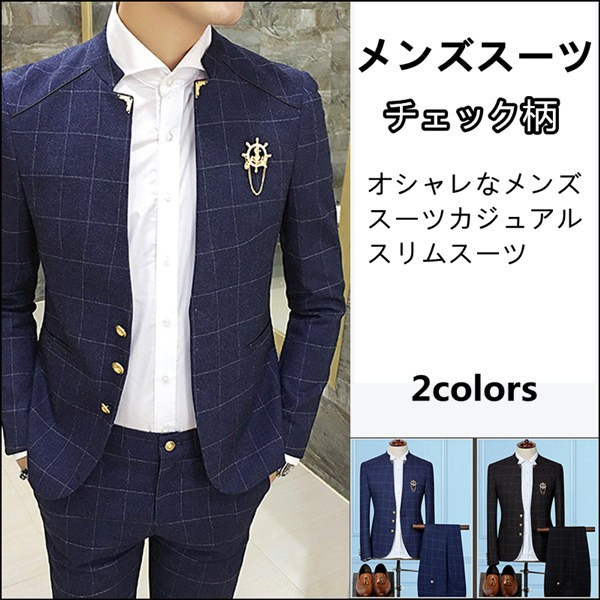 送料無料メンズ ビジネススーツ セットアップ 2ピース スーツ 結婚式 チェック メンズ スーツ セット 春 秋 冬 通勤 カジュアル オシャレ 細身