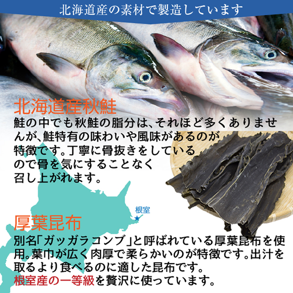 調理方法 :あつあつのご飯と共に、北海道根室産1等級の厚葉昆布と秋鮭の旨味