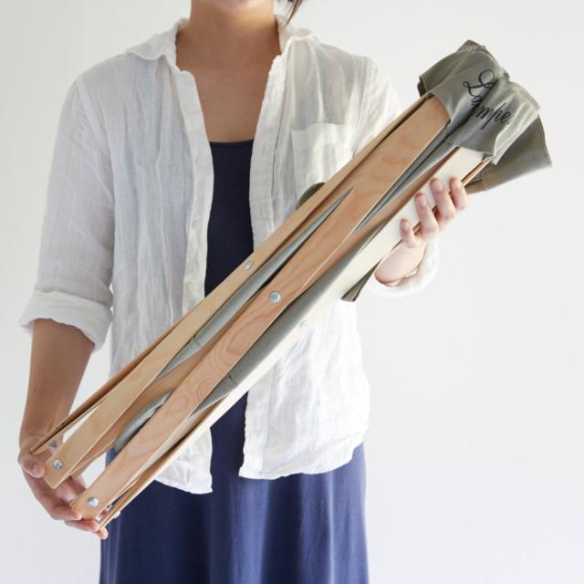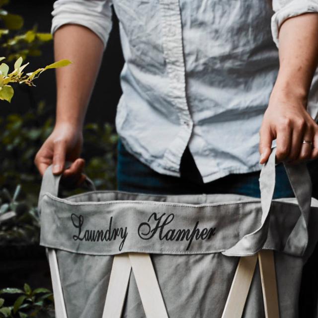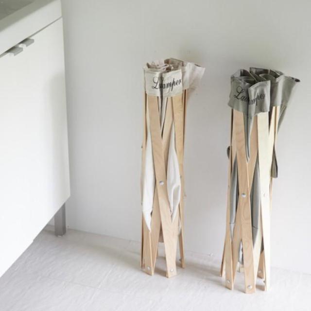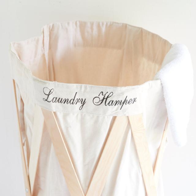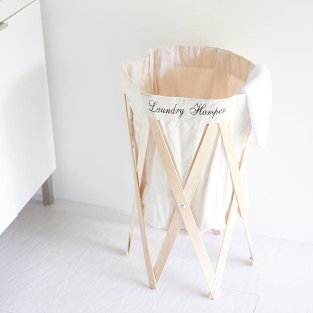 布袋は木枠からの取り外しが可能です。取っ手付きのおしゃれなランドリーバッグとして、コインランドリーへの持ち運びにも大活躍しそうです。