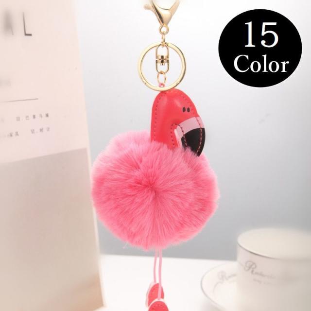 キーホルダー ペンダント フラミンゴ ボンボン 可愛い おしゃれ 大人 キッズ 子供 リング フェイクレザー 車 装飾 カー ギ