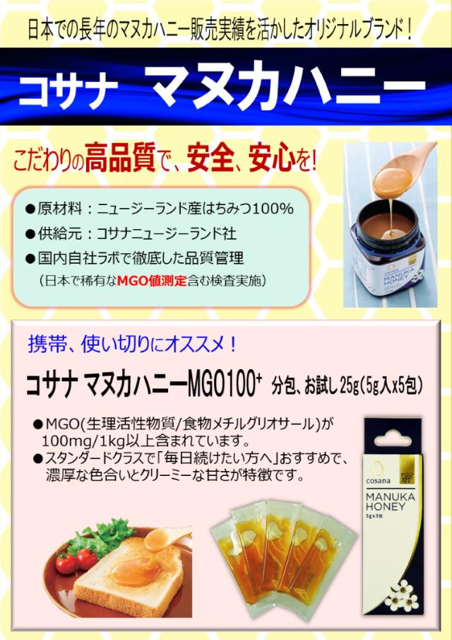 コサナ マヌカハニーMGO100+ 分包/お試しに関する詳細なお問合せは下記までお願いします