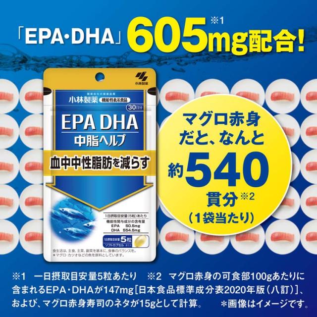 ●小林製薬のEPA・DHAサプリメント「EPA DHA」は、フィッシュオイル由来のEPA・DHAを配合した機能性表示食品サプリメント。