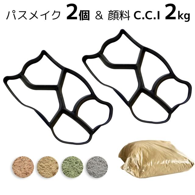 DIY 石の型抜き 鉄平石 アプローチ・パスメイク2個+顔料CCI 2kgセット 簡単、低コストのDIY手作りキット
