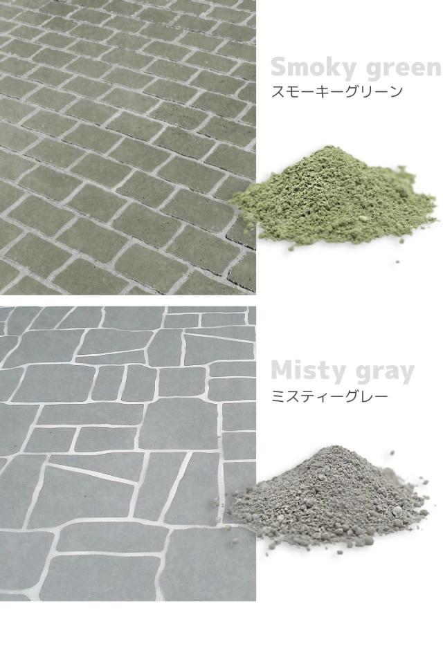コンクリートを流し込むだけで、オリジナルの石畳やアプローチができるこちらの型のこと。セットとなっている2kgの色粉で、およそパスメイク4個分の表面に着色できます。
