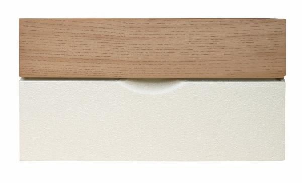 木調のフタと塗り壁のボディを組み合わせた、シンプルなデザイン。
