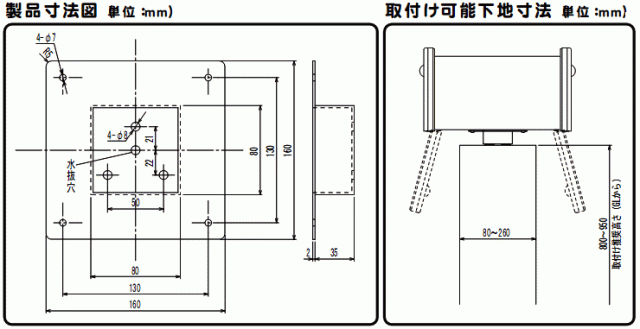 取り付ける門柱の寸法に制限がございますので、下記の詳細図を良くご検討下さい。