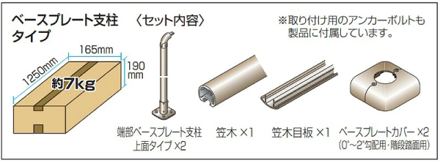 ・セット内容:ベースプレート支柱×2、笠木×1、笠木目板×1、ベースプレートカバー×2