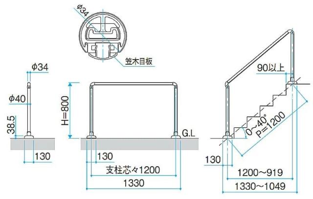 階段手すり 玄関手すり 手すり 手摺 手摺り 屋外 玄関アプローチ エトランポS 1スパンセット 笠木目板 ベースプレート 支柱タイプ