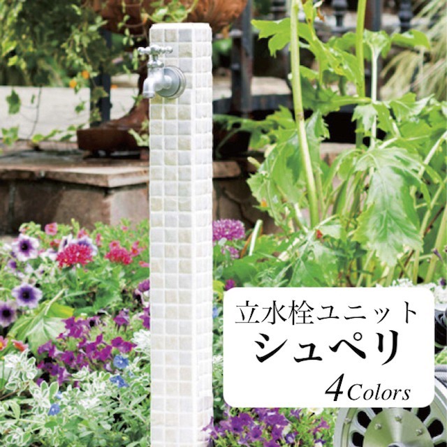 水栓 水栓柱 立水栓 庭 シュペリ セラミックタイルの外流し ガーデン向け水栓柱ユニット 送料無料 【蛇口別売り】