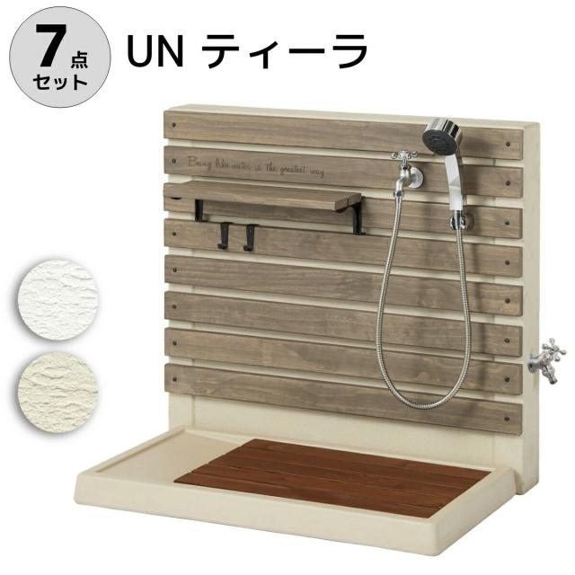 水栓 水栓柱 立水栓 庭 un ティーラ(アンティーラ)ガーデンパン(トレビマルチすのこ)+蛇口シャワーホースセット+補助蛇口+ウッドトレイ+フック2個セット トーシン