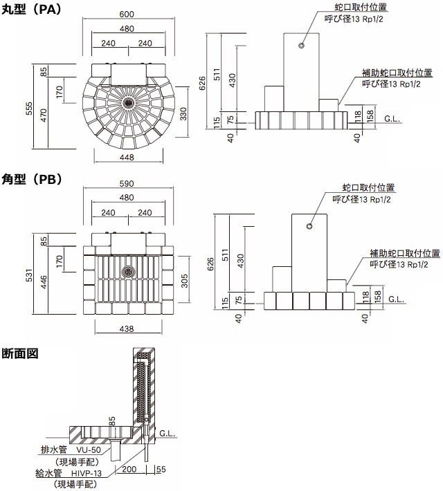 ※蛇口は別売です。立水栓の蛇口からお買い求めください。