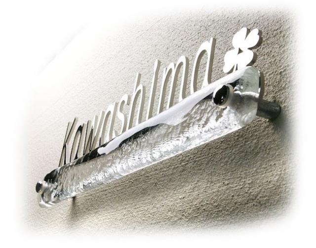 新築祝いにオススメです!表札 説明ディーズサイン・ガラスコレクション G-04 ガラス+ステンレス切り文字表札 自分で選べる表札デザイン 新築祝いにディーズガーデンの表札(門札) 新築エクステリア門柱に取り付け玄関に素敵なガラス表札(送料無料)ガラス表札G-04は、ガラス色、文字種類、オーナメント、ガラス部への彫り込み等を自由に組み合わせて楽しめる表札です。ガラス部のみをさらに一本追加してガラス色の組み合わせを楽しんだり、文字を彫り込んだガラス部のみでシンプルに楽しんだり、お家のテイストに合わせてデザインをお選びいただけます。