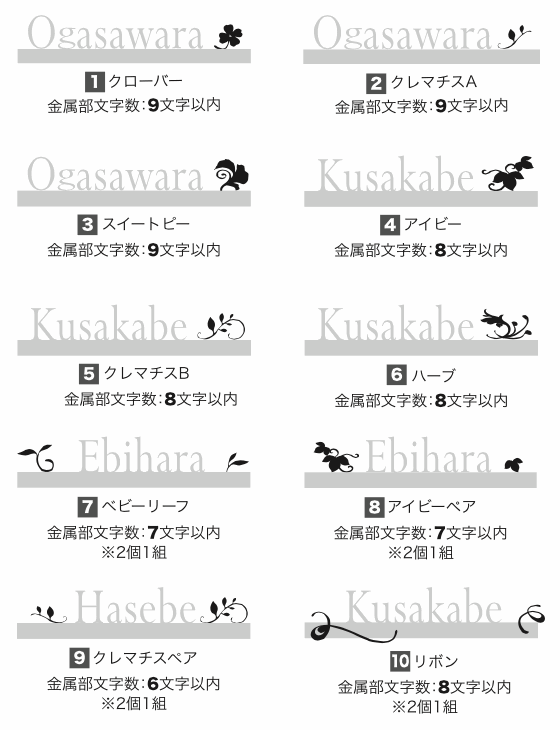 金属文字の書体をお選びください。