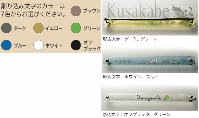 ●彫込文字のカラーは7種類からお選びください。