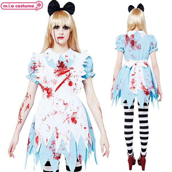 1140D★【送料無料・即納】 ブラッディーアリス サイズ:レディース 不思議の国のアリス 血糊 ハロウィン コスプレ 衣装 コスチューム 仮装 ホラー イベント