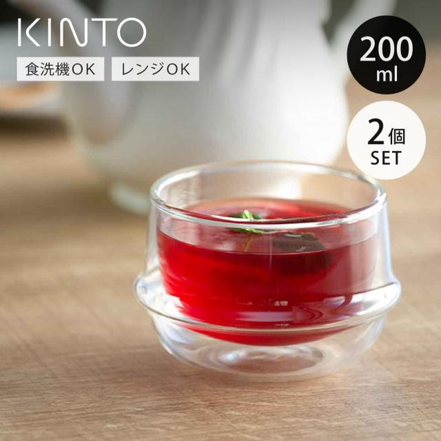 KINTO キントー KRONOS ダブルウォール ティーカップ 200ml 同色2個セット ( 二重構造 保温 ガラス 同色2個セット 食洗機対応 電子レンジ対応 保冷 食器 カップ ダブルウォールグラス デザートカップ マグ )