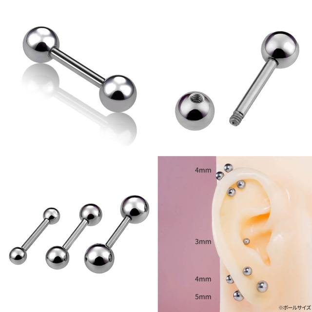 チタン ストレートバーベル 14G 16G 18G 20G チタン シルバー 軟骨ピアス ボディピアス G23 ピアス 金属アレルギー 対応 つけっぱなし