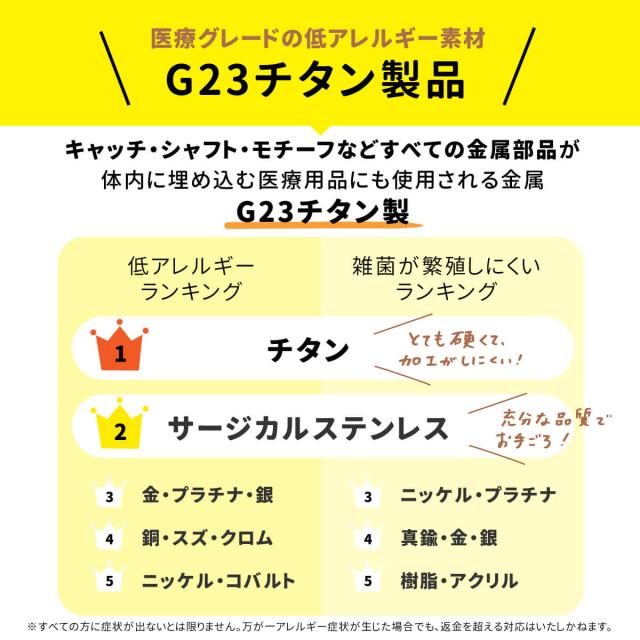 - こちらのショップは間違いないので。 チタン製でキャッチのサイズも選べて良いと思います。 私は今、キャッチ3mm縛りにしているので3mmキャッチ扱ってくださってて良かったです。
