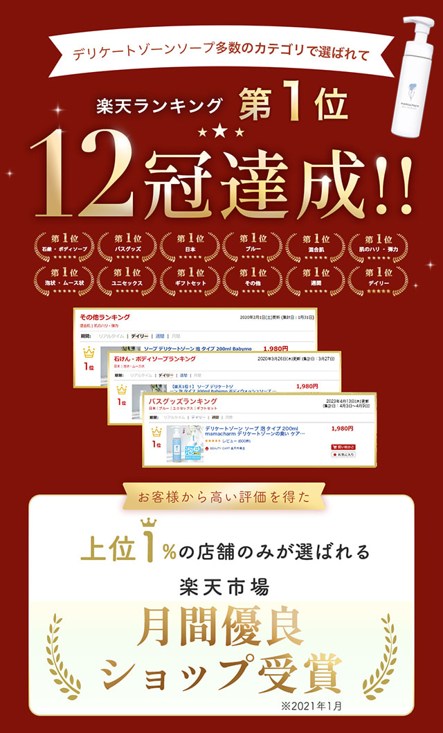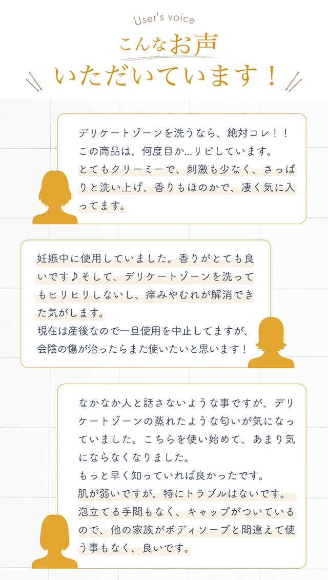 - 今までデリケートゾーンソープは色々使いましたが、今までの中で1番良い気がします。 においが今までで一番抑えられていて、泡で出るので使い良いです。