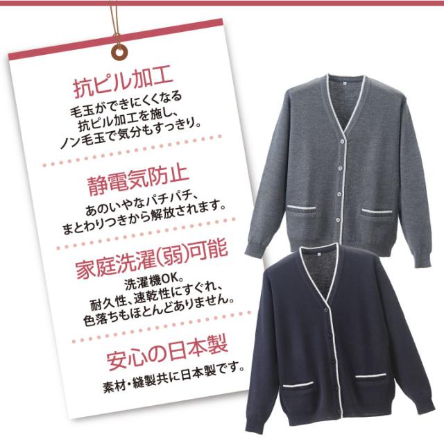 D-1014 抗ピルラインカーディガン 日本製 ニットカーディガン 制服 女性 クリニック オフィス かわいい 静電気防止
