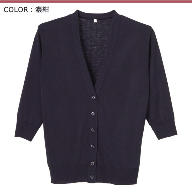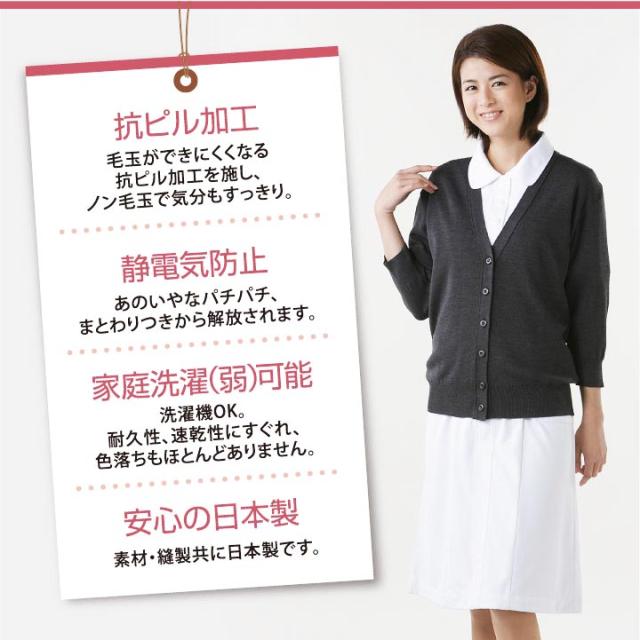 D-1004 抗ピル七分袖カーディガンロング 日本製 ニットカーディガン 制服 女性 クリニック オフィス かわいい ベーシック スタンダード 静電気防止