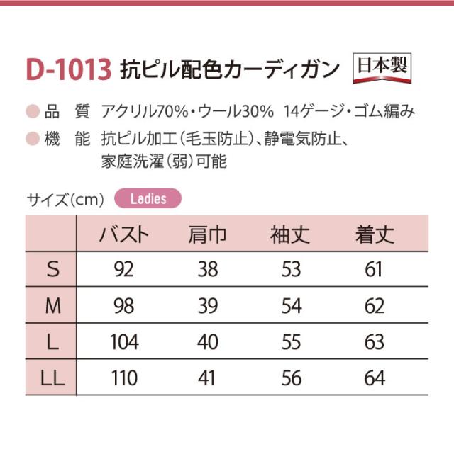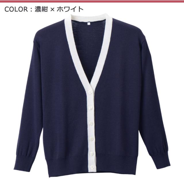 D-1013 抗ピル配色カーディガン 日本製 ニットカーディガン 制服 女性 クリニック オフィス かわいい 静電気防止