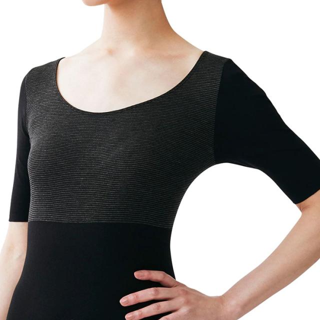 ボーダー部分に吸湿発熱繊維を使用。冷えのポイントを集中的に暖め、全身をほどよい暖かさに保ちます。