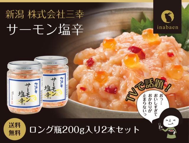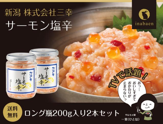 サーモン塩辛 ロング瓶 2本セット 送料無料 塩辛 しおから 新潟 三幸 プレゼント ギフト 惣菜 お惣菜 時短 おかず 一人暮らし 食品 ご飯のお供 ご飯のおとも