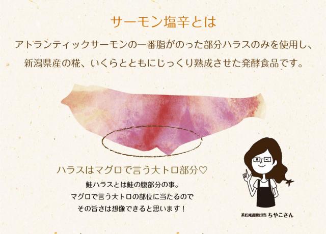 関連キーワード:サーモン塩辛 塩辛 しおから 鮭 麹 新潟県 ハラス 珍味 おつまみ