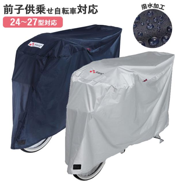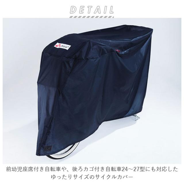 自転車カバー 飛ばない 通販 サイクルカバー DX 自転車 カバー 防犯 3D立体構造設計 撥水 はっ水 風飛び防止 バックル バタツキ防止 ヒモ ロック対応 補強穴 シンプル 無地 シルバー ネイビー 後カゴ付き自転車 前子供乗せ レインカバー Kawasumi カワスミ 川住製作所