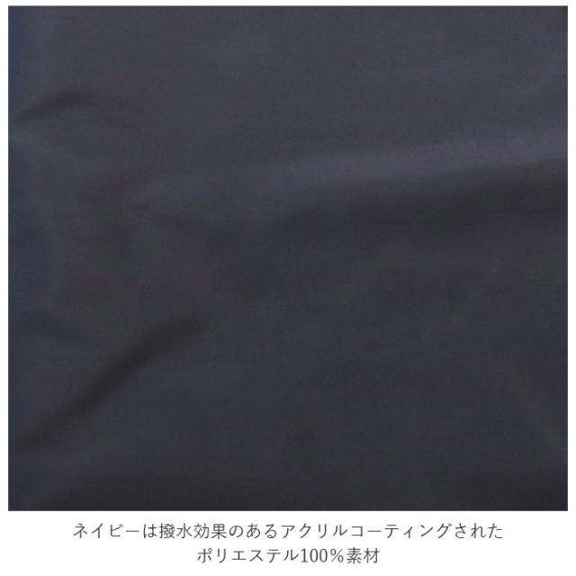 | 素材 | ポリエステル100% ・ネイビー:アクリルコーティング ※はっ水(水をはじきやすい) ・シルバー:シルバーコーティング ※はっ水(水をはじきやすい) |
