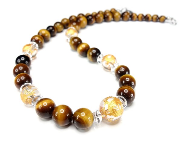 邪気払い金龍手彫り水晶タイガーアイ水晶ボタン天然石ネックレス石街