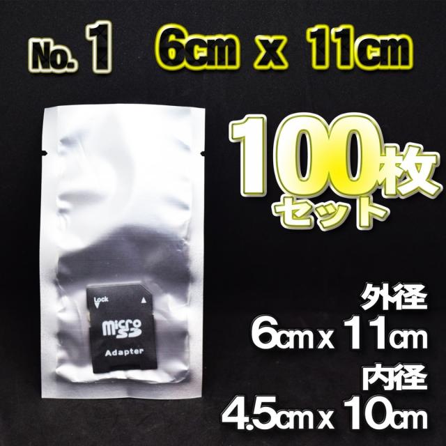 【No.1】【6cmx11cm】帯電防止シールドバッグ オープントップ 入れ物 x 100枚セット