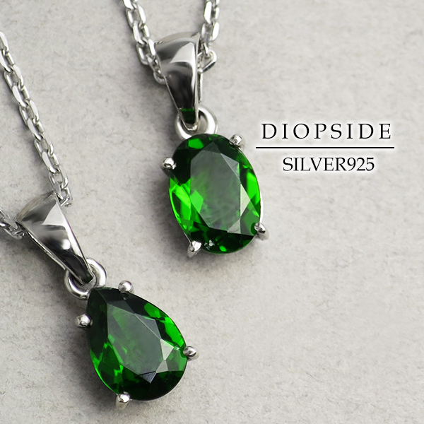 クロムダイオプサイト 中国産 シルバー ネックレス ドロップ or オーバル カット 天然石 パワーストーン クロム ダイオプサイト