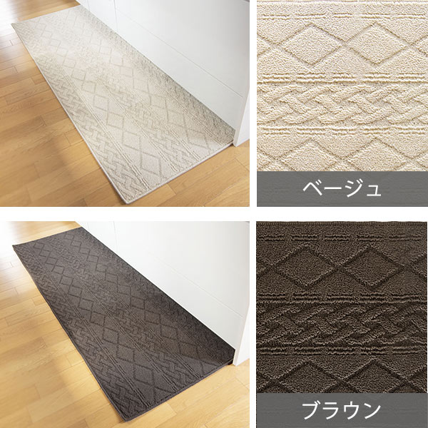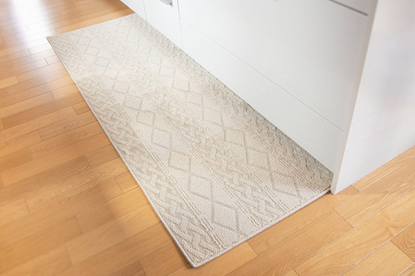 立ち仕事の多いキッチンにぴったりな、弾力のある疲れにくいループパイルのマットです。毛羽立ちしにくく、へたりにくい素材で掃除機もかけやすい仕様です。