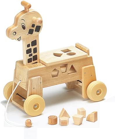 引車、乗用遊び。円柱、三角柱など7種類のブロックをバス本体の穴に入れるパズル遊びもできます。