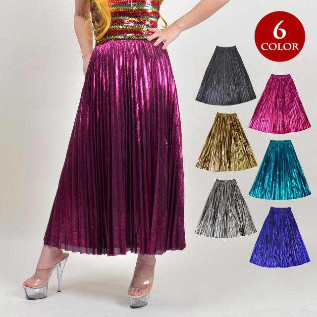 ステージ衣装 スカート メタリック プリーツ ロング丈 ダンス 衣装 よさこい 社交 ブラック 黒 ピンク レディース PD97217[M便 4/3] ダンス衣装