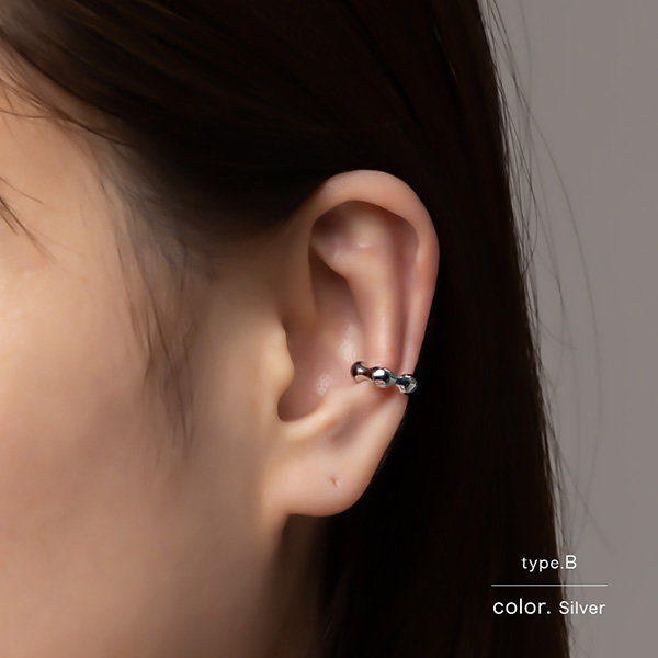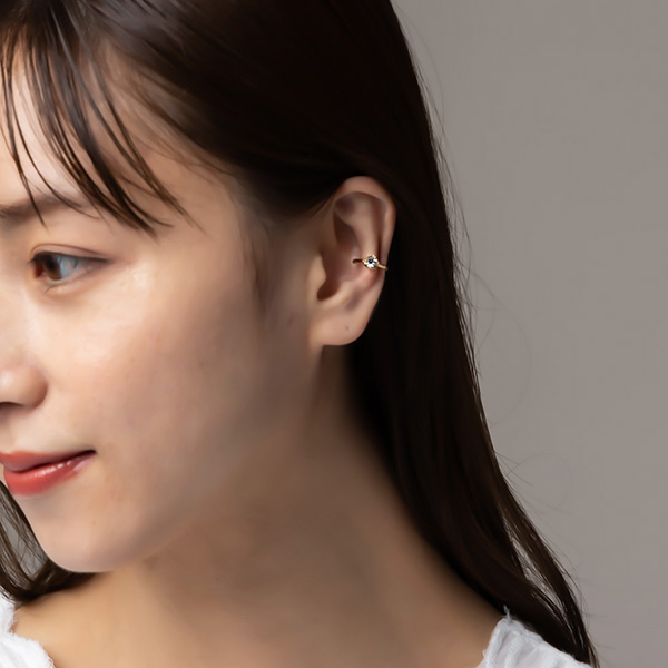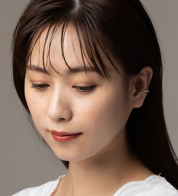耳の軟骨部分に引っ掛けるだけの簡単でストレスフリーなウェアリング(イヤーカフ)です。