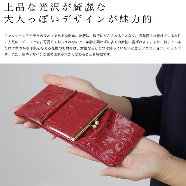 三つ折り財布 コンパクトウォレット ミニ財布 がま口 がまぐち バラ 花柄 エナメル 型押しレザー innocent Sac イノセントサック 本革 牛革 日本の革